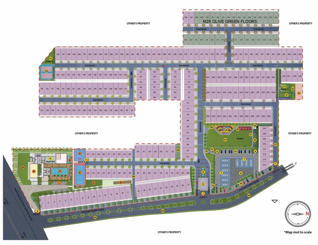 Map not to scale. The map is not necessarily accurate to surveying or engineering standards. The map shown here is for illustration purposes only. It does not represent the ground survey and represents only the approximate relative location and boundaries. The location map depicts an indicative and selective representation of certain key developments around the project. The Promoter makes no representation regarding continuity/existence of these developments/landmarks going forward.